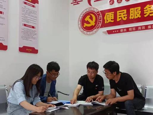 图为检查组在乡镇便民服务大厅,查看民政、医保等服务记录