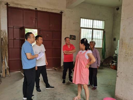 图为检查组深入群众了解低保政策落实情况、查看危房改造政策落实情况、现场测量扶贫项目实施情况,紧盯“四个不摘”,助力乡村振兴有效衔接。