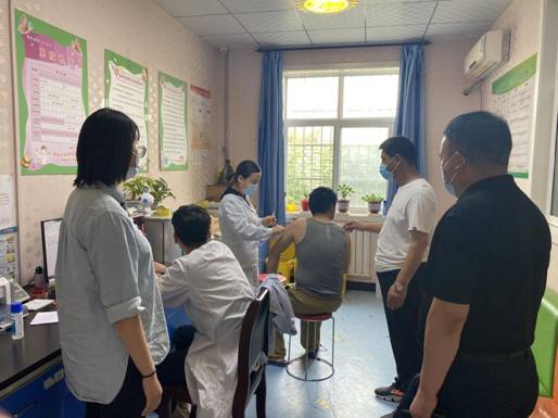 图为检查组深入店张卫生院检查新冠疫苗接种情况
