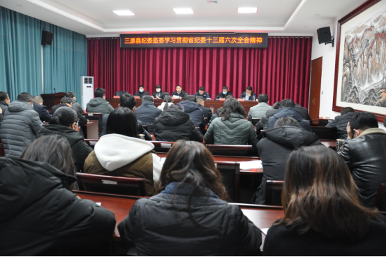 近日,三原县纪委监委召开全县纪检监察干部会议,专题传达学习十三届省纪委六次全会精神,结合工作实际,研究贯彻落实措施。会上传达学习了十三届省纪委六次全会决议和王兴宁书记代表省纪委常委会所作的工作报告,并对全县纪检监察系统学习贯彻落实全会精神进行了安排部署。