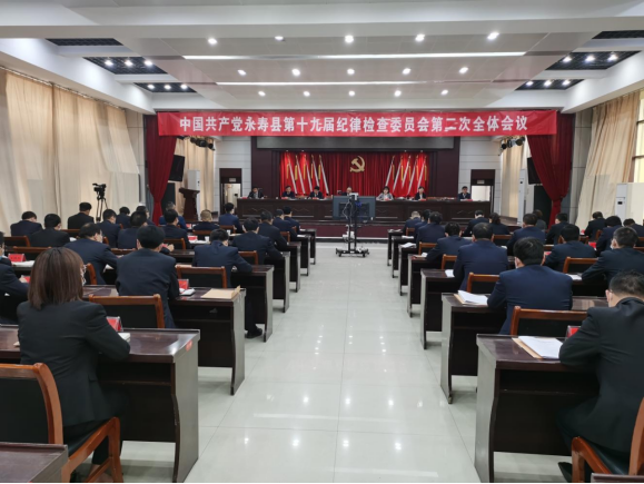 会议分两个阶段进行。在第一阶段的会议上,县委书记王飞出席会议并讲话,市纪委监委第一监督检查室副主任李宋宁到会指导,全体在家的县级领导和全体县纪委委员出席会议。永寿县委常委、纪委书记、监委主任党英群主持会议并代表县纪委常委会作了题为《忠诚履职守初心奋发有为担使命为奋力谱写永寿新时代高质量发展新篇章提供坚强保障》的工作报告。