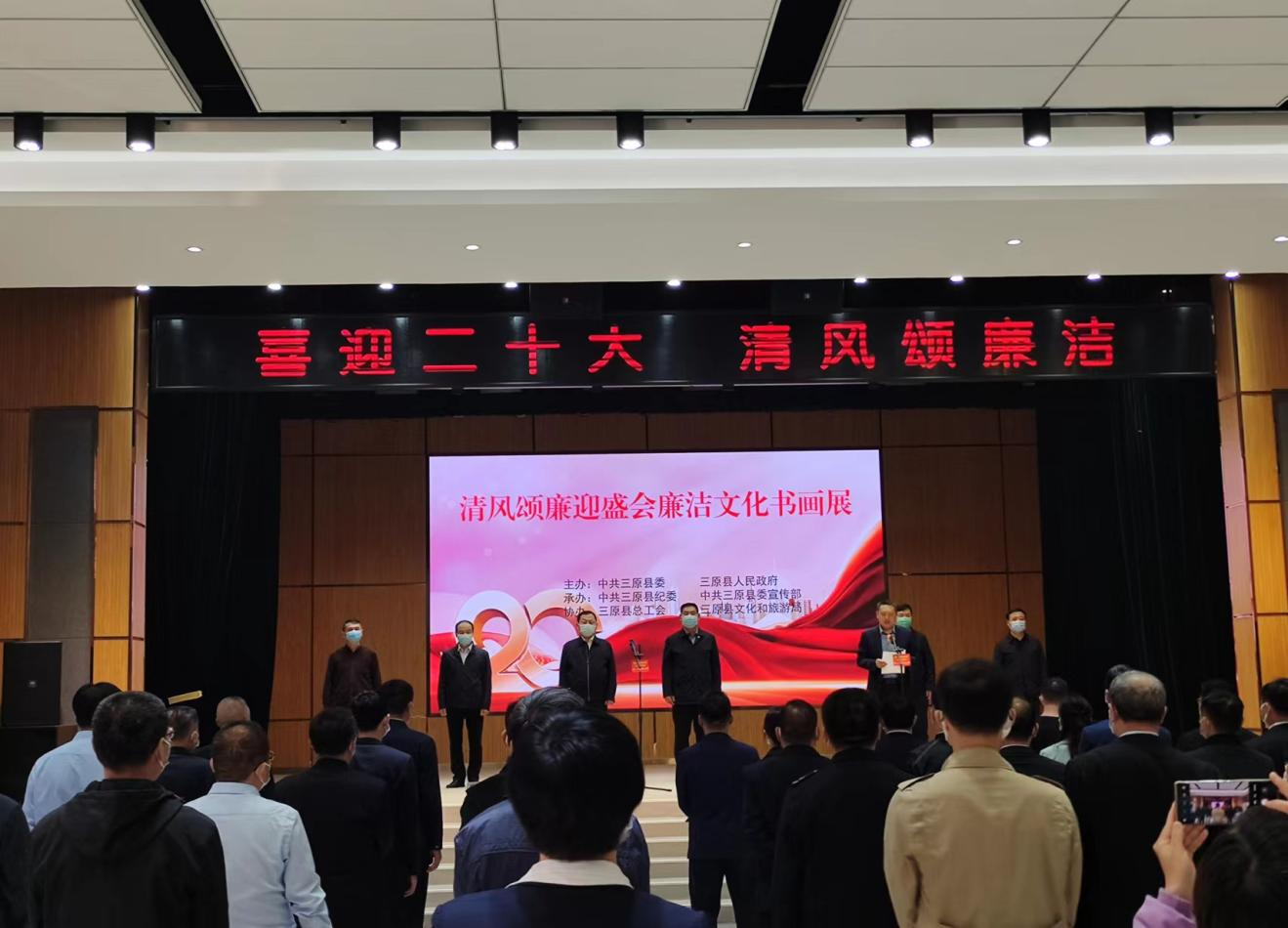 9月26日,三原县“清风颂廉迎盛会”廉洁文化书画展现在开幕。