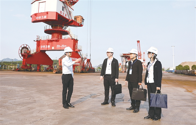 广西壮族自治区崇左市纪委监委把监督护航中国(广西)自由贸易试验区高质量发展作为政治监督的重要任务,组织纪检监察干部深入一线调研走访,推动解决相关问题。图为近日,该市纪委监委联合市城建集团纪委在崇左港了解相关情况。 李稳新 摄