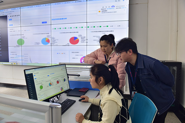 河南省灵宝市纪委监委聚焦乡村振兴项目资金使用,靶向构建监督模型,以“智慧监督”助力正风肃纪反腐。图为该市纪检监察干部在“三资”智慧化监管平台了解相关情况。杨蓓蓓 摄