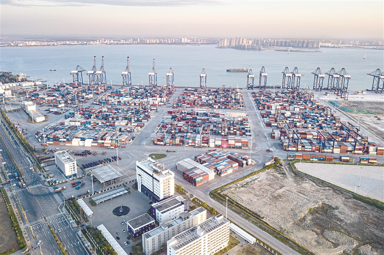 图为在海南洋浦经济开发区拍摄的洋浦港口岸,其既是海南自贸港8个对外开放口岸之一,又是10个“二线口岸”之一。新华社记者 蒲晓旭 摄