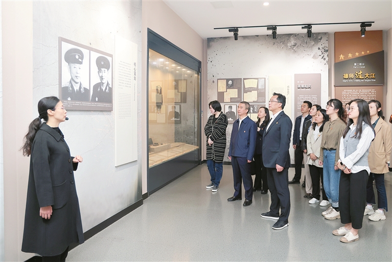 江苏省江阴市纪委监委持续加强和规范党内政治生活,通过组织参观红色教育基地、开展“重温入党誓词”等活动,帮助纪检监察干部提升党性修养。图为该市纪检监察干部在渡江战役纪念馆参观学习。 薛晓奕 摄
